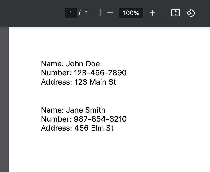We want to create a PDF page from the list of people. We can do that like this: